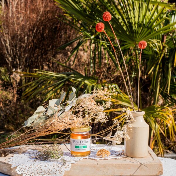 Une gelée qui s’accorde parfaitement avec du poisson aussi bien chaud que froid. Vous pouvez l’utiliser pour sucrer vos tisanes ou tout simplement dans un peu d’eau chaude.